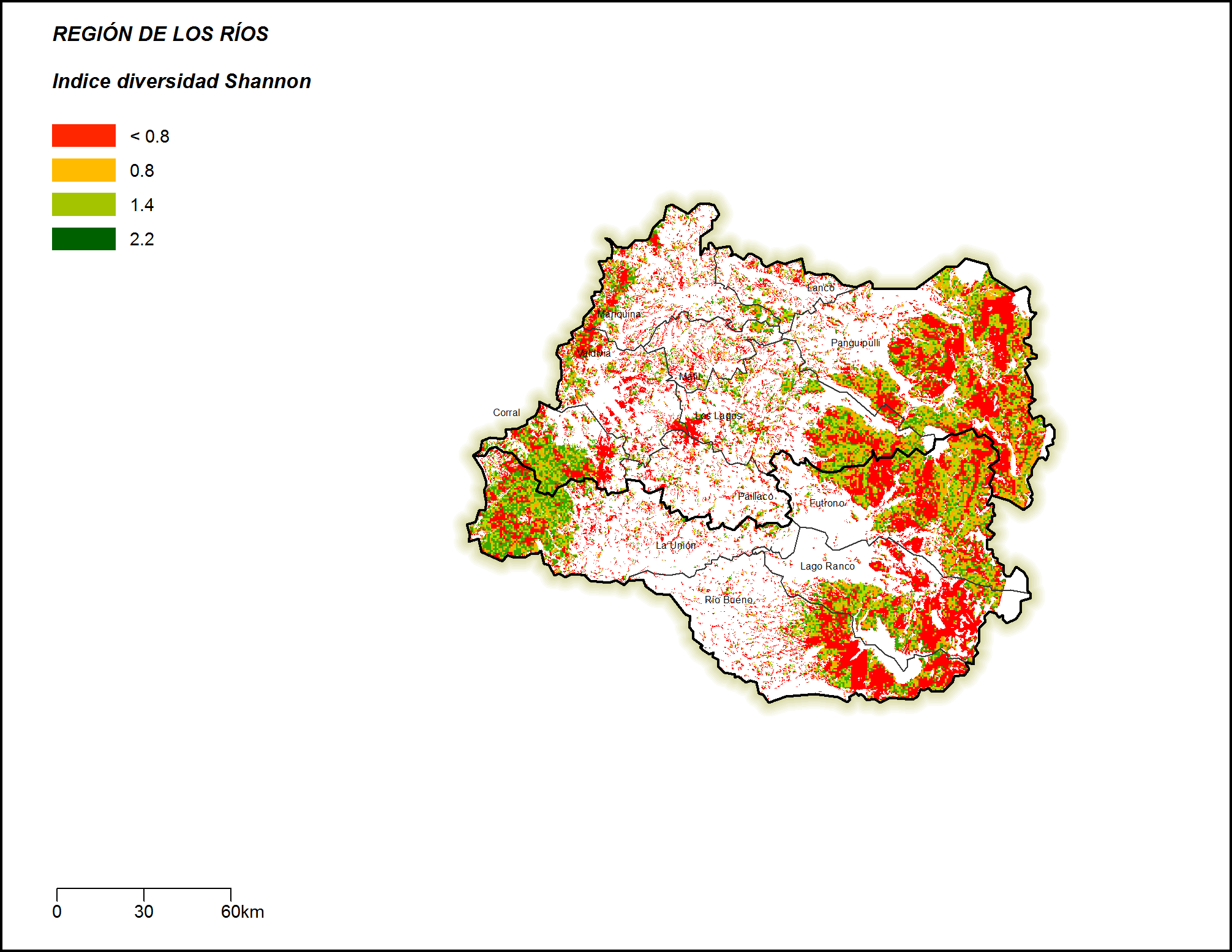 Mapa temático Biodiversidad Plantae de la Región de Los Ríoss.