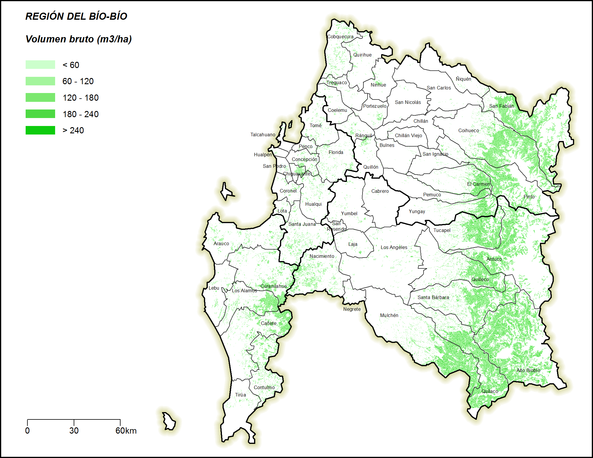 Mapa Temático Volumen Bruto de la Región del Biobío
