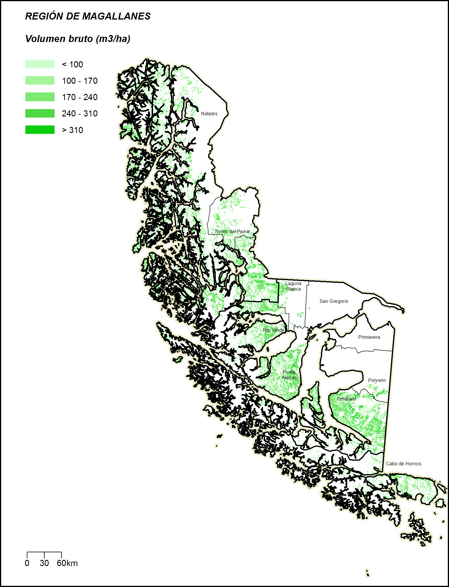 Existencias totales de Bosque Nativo: La región contabiliza 850,3 millones de m3 sólidos sin corteza a un índice de utilización de 10 cm, con una precisión de 84% para el